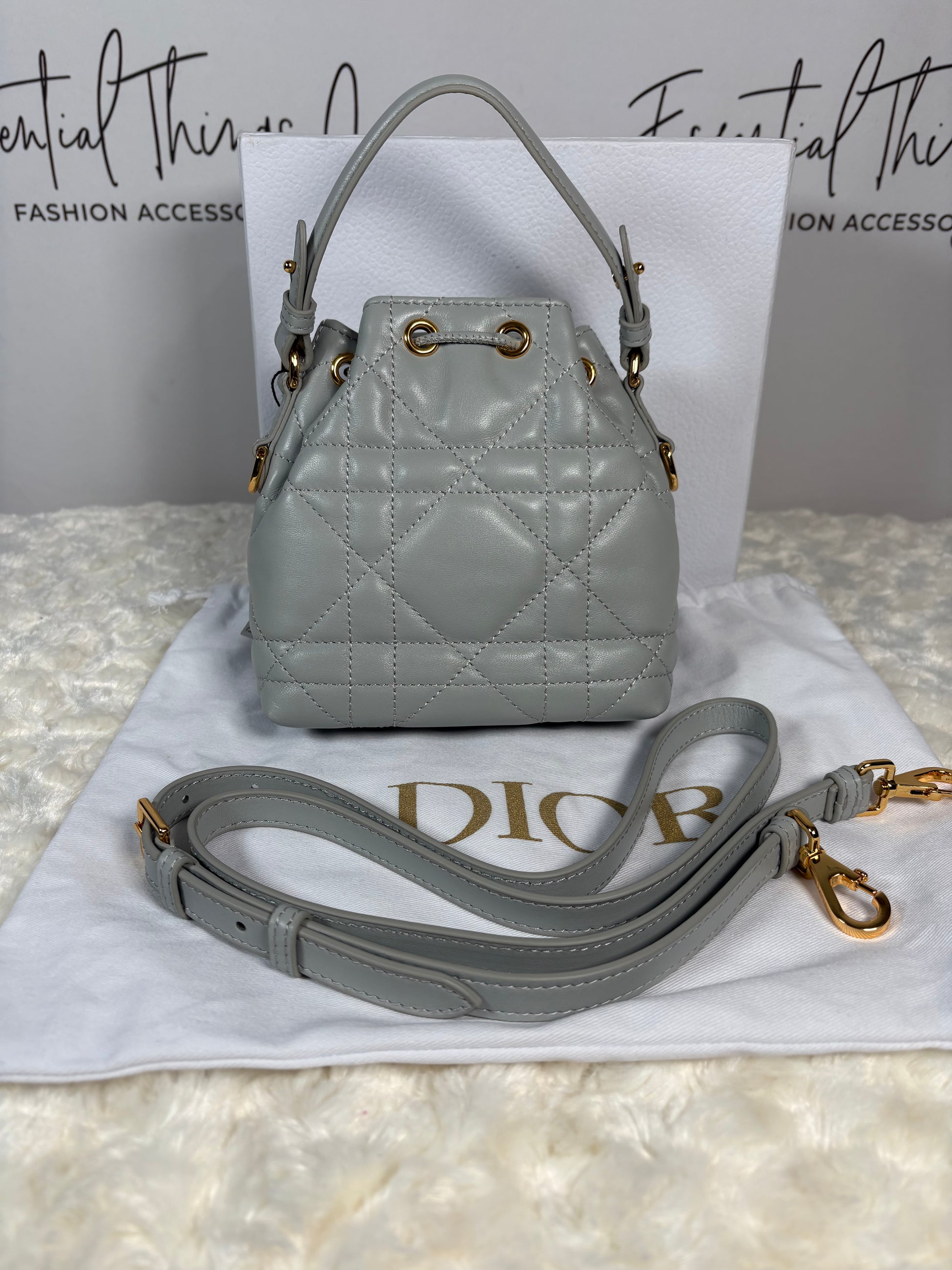 Take your style to the next level with the CD Caro Bucket! Made from genuine leather and featuring stunning gold hardware, this bucket bag is a must-have for any fashionista. The unique stitching adds an extra touch of flair. Plus, with the optional shoulder strap, you can rock this bag any way you want!